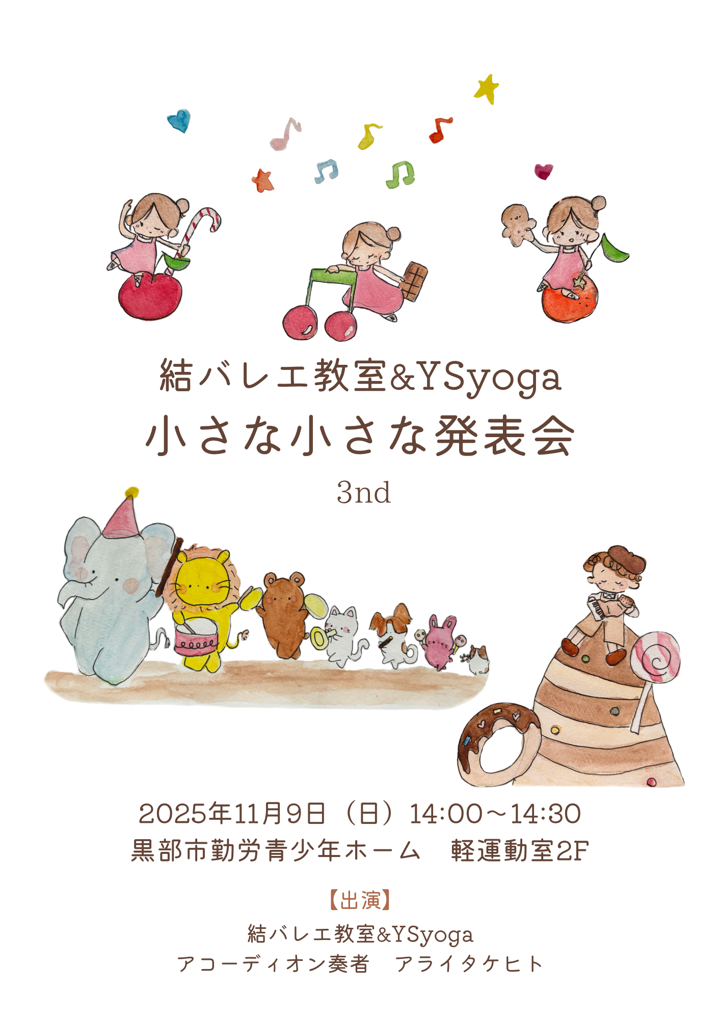 「やさしい音楽会」「accordion concert in GRATINER」「小さな喫茶店の演奏会」
